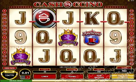 CashOccino is a 5 reel online slot with 30 playable lines, the minimum bet per line is $0.01 and the maximum is $0.05