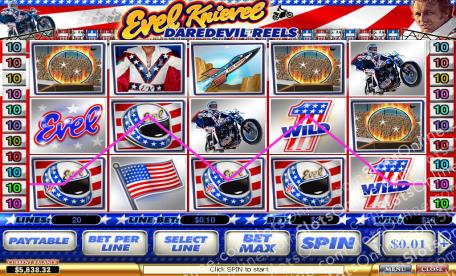 Evel Knievel Daredevil is a 5 reel online slot with 20 playable lines, the minimum bet per line is $0.01 and the maximum is $2.00
