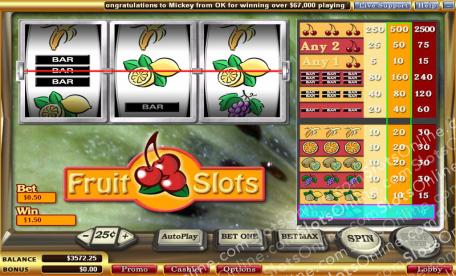 Fruit is a 3 reel online slot with 1 playable lines, the minimum bet per line is $0.01 and the maximum is $10.00