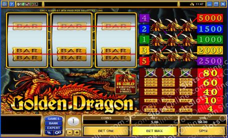 Golden Dragon is a 3 reel online slot with 5 playable lines, the minimum bet per line is $0.25 and the maximum is $20.00