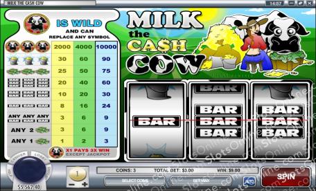 Milk The Cash Cow is a 3 reel online slot with 1 playable lines, the minimum bet per line is $0.01 and the maximum is $5.00
