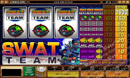 S.W.A.T. Team is a 3 reel online slot with 1 playable lines, the minimum bet per line is $0.25 and the maximum is $5.00