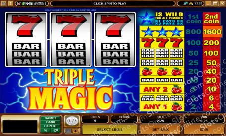 Triple Magic is a 3 reel online slot with 1 playable lines, the minimum bet per line is $0.25 and the maximum is $5.00